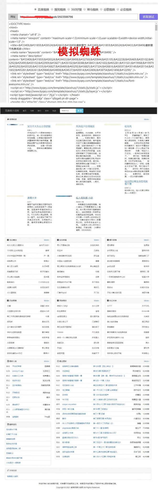1.基于小说网站框架 有利避免了百度对URL判断为站群的机制。