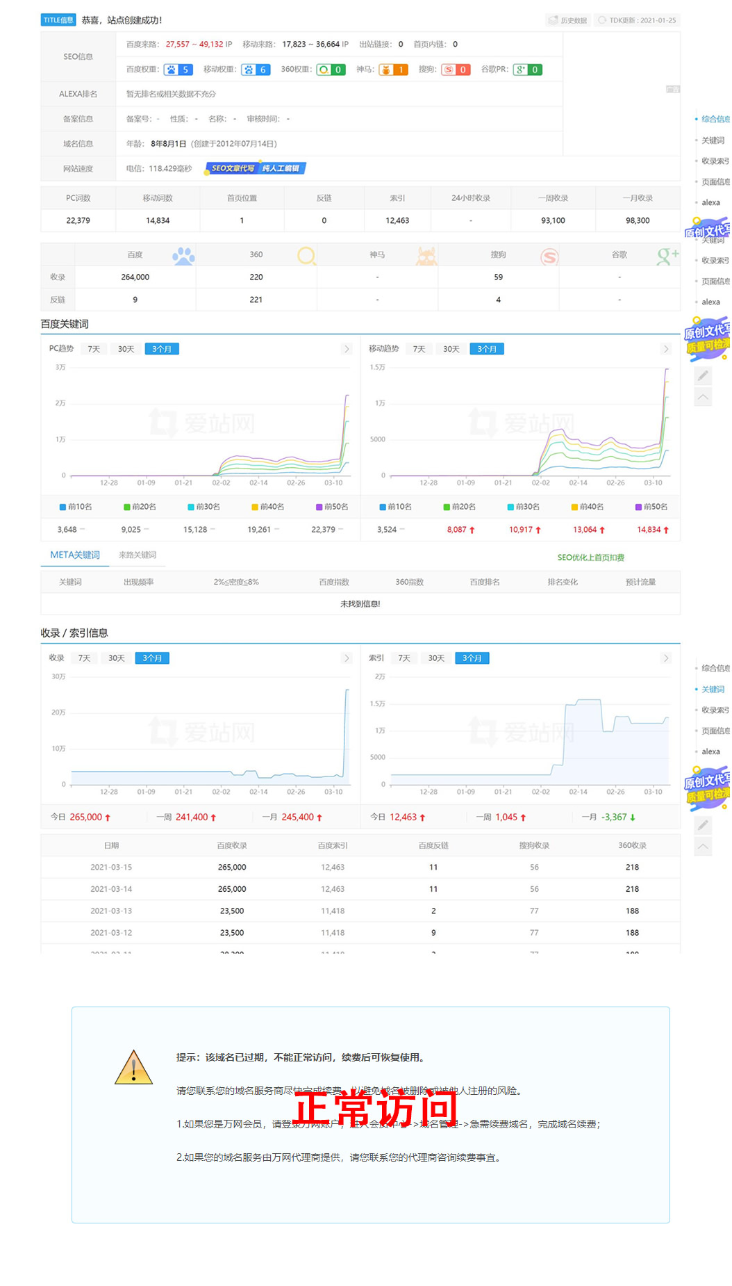 需要注意的是,此程序的模板页面,正常访问不可见,仅搜索引擎蜘蛛可见!