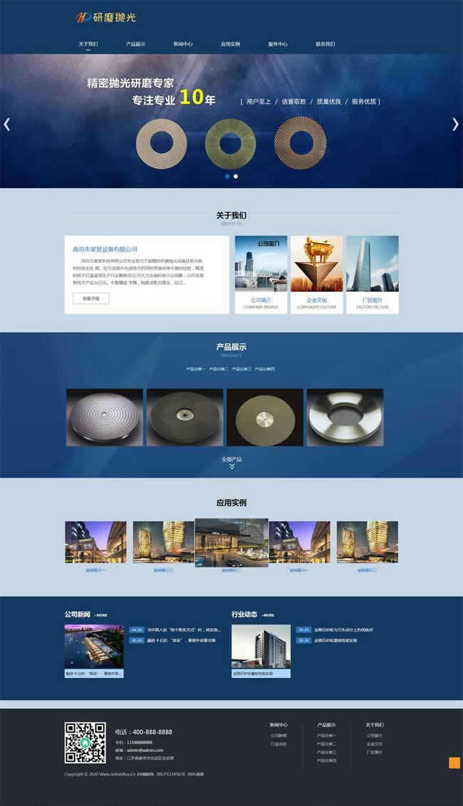 一款蓝色响应式的抛光设备,陶瓷研磨设备,零部件生产销售企业网站织梦模板dedecms下载。包含:关于我们、产品展示、新闻中心、应用实例、服务中心、联系我们等模块页面。