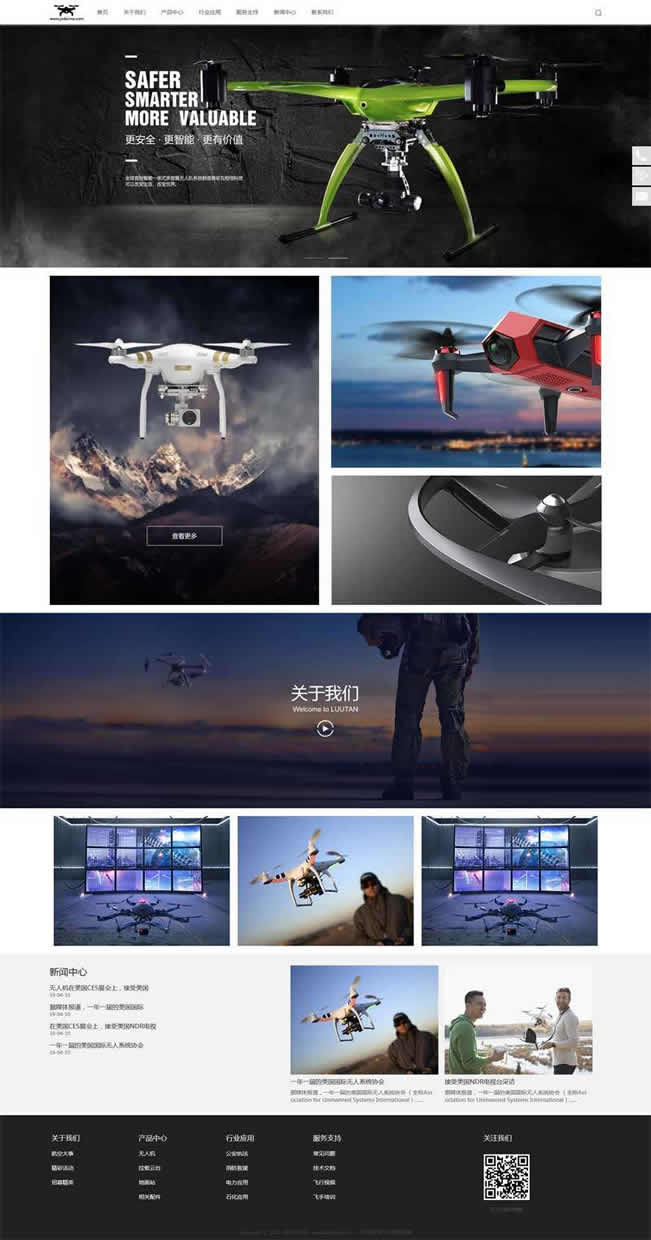 大气响应式的无人机制造生产企业网站织梦模板dedecms下载。适用于无人机,机械设备行业等网站源码。主要有: 关于我们、产品中心、行业应用、服务支持、新闻中心、联系我们等模块页面。